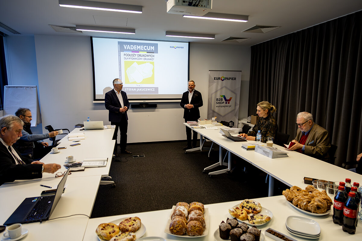 17 stycznia br. w siedzibie Europapier Polska odbyło się spotkanie przedstawicieli branży poligraficznej. Wydarzenie, pierwotnie zaplanowane na grudzień, zostało przesunięte na styczeń, aby umożliwić udział jak największej liczbie uczestników. Głównym tematem była prezentacja nowego podręcznika „Vademecum podłoży drukowych dla wydawców i drukarzy” autorstwa prof. dr. hab. Stefana Jakucewicza.