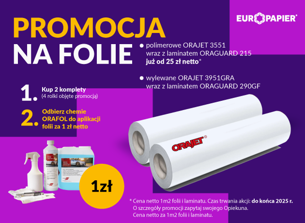 - folia polimerowa ORAJET 3551 + laminat ORAGUARD 215 od 25 zł/m2