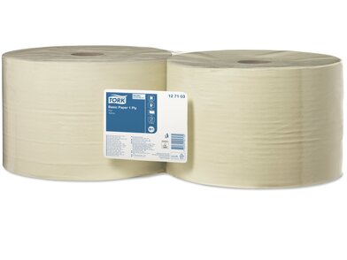 Papier pasuje do Tork® dozownika mini do czyściw w roli centralnie dozowanych – kompaktowego i wszechstronnego dozownika do profesjonalnych zastosowań obejmujących wycieranie powierzchni i rąk. Kolor żółty oraz brązowy. Występuje w różych długościach rolki.