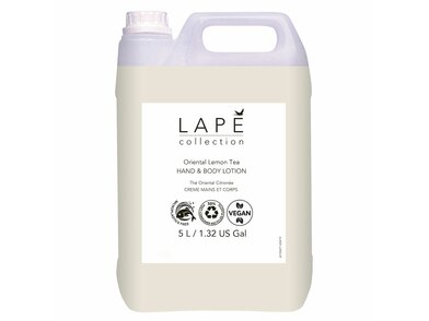 LAPE Balsam Oriental Lemon Tea to luksusowa linia kosmetyków do rąk i ciała o subtelnym zapachu orientalnej herbaty z aromatem cytrynowym dzięki którymu stają się uniwersalne zarówno dla kobiet jak i mężczyzn. Cudowny, deliaktny, otulający zapach balsamu uwalnia się podczas każdorazowego użycia. Luksusowy wygląd, zapach oraz właściwości balsamu sprawiają, że goście czują się wyjątkowo i przyjemnie po każdym jego użyciu. Kolekcja LAPĒ oferuje również butelki 300 ml możliwe do ponownego uzupełniania odpowiednim preparatem o tym samym zapachu. Opakowania w pełni nadają się do recyklingu i tym samym sprawiają, że kolekcja LAPĒ jest rozwiązaniem przyjaznym również środowisku naturalnemu.Właściwości produktu