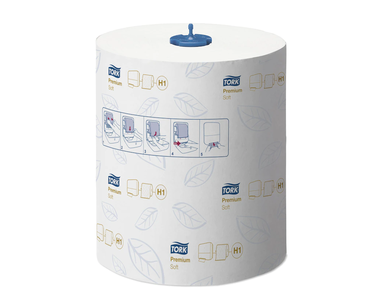 Tork Matic® ekstra miękki ręcznik w roli pozwala doskonale zadbać o wizerunek łazienki: jest miękki i zdobi go dekor w kształcie niebieskiego listka.
