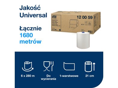System dozowania ręczników w roli Tork Matic® (H1) charakteryzuje się dużą pojemnością – idealną dla często odwiedzanych łazienek w obiektach takich jak szkoła czy lotnisko. Długośc pojedyńczej rolki 280m.