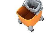 Wiaderko z rączką na kółkach o pojemności 20 l, z wyciskarką mopa płaskiego. Kółka ułatwiają przemieszczanie się z roztworem roboczym. Wyposażone w uchwyt do kija mopa, posiada również wyżłobienie ułatwiające wylewanie wody, znajdujące się na spodzie wiaderka. Możliwość zamontowania dodatkowego wiaderka o pojemności 6 l. Sprawdzi się na obiektach o małych powierzchniach.Parametry produktu: