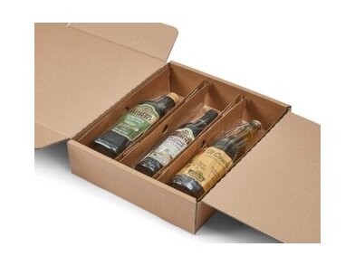 Pudełka oraz wkładki do wysyłki wina, mogą zabezpieczać pojedyncze, podwójne lub potrójne zestawy butelek produktów winiarskich w atrakcyjnym opakowaniu.