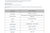 Konstrukcja wykazuje odporność na rozdarcie i zwijanie. Materiał dwustronnie biały matowy do zadruku dwustronnego. Folia do produkcji grafik Roll Up, etykiet, metek, wodoodpornych plakatów etc.