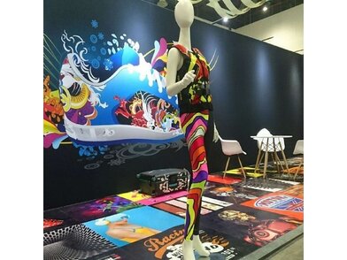 podłoże z poliestrowej dzianiny osnowowej, z białą powierzchnią do zadruku UV i Latex i czarną powłoką powleczoną żywicą poliuretanową PU, zapewniającą pełną nieprzezroczystość w aplikacjach. Materiał elastyczny w obu kierunkach idealnie nadaje się do produkcji systemów ekspozycyjnych typu PopUp oraz ścian targowych. Z racji głęboko matowej powierzchni wykorzystywany także na tła fotograficzne.