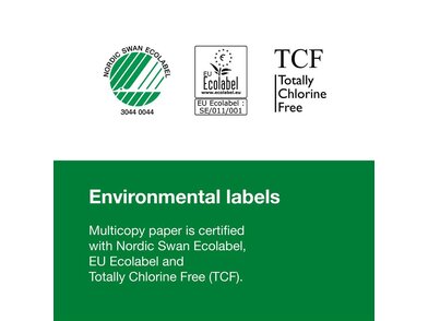 - posiada certyfikat TCF- Masa celulozowa używana do produkcji wszystkich papierów Multicopy jest całkowicie wolna od chloru (TCF)