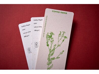Coffee Paper to ekologiczny papier, w 100% pochodzący z recyklingu poużytkowego, zawierający 5% odpadów kawy.