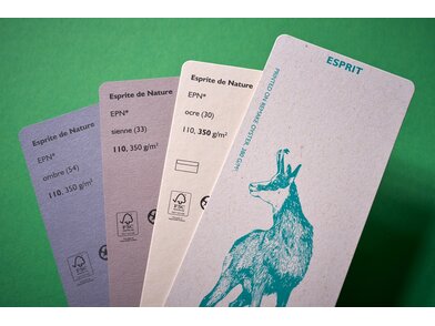 Papier na luksusowe opakowania. Papier wyprodukowany z włókien w 100% uzyskanych z papierów z recyklingu i barwionych przy użyciu pigmentów pochodzenia naturalnego z Francji (minerały).