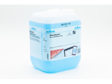 Mocny płyn myjący w roztworze gotowym do użycia do usuwania zabrudzeń ze szkła i powierzchni ponadpodłogowych. Produkt czyści intensywnie i wysycha bez smug. GlasQueen nie podlega obowiązkowi oznakowania wg rozporządzenia CLP oraz jest wolny od substancji zapachowych. Produkt został przetestowany zgodnie z DIN EN ISO 22088-3:2006-11 (Tworzywa sztuczne - oznaczanie odporności na pękanie naprężeniowe warunkowane środowiskiem).