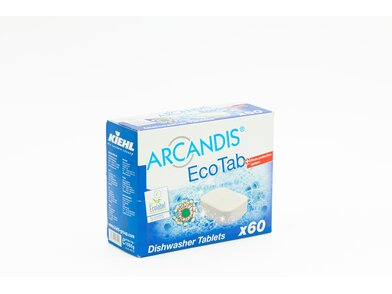 Tabletki do mycia naczyń w zwykłych zmywarkach domowych. Skutecznie usuwają białko i skrobię oraz znakomicie rozpuszczają tłuszcz i uporczywy osad po kawie i herbacie. Produkt osiąga pełną siłę czyszczenia nawet w programie o niskiej temperaturze mycia. Zawarte w produkcie ochronne substancje antykorozyjne umożliwiają delikatne mycie naczyń szklanych. ARCANDISO-EcoTabs jest wolny od fosforanów, substancji zapachowych i konserwantów, a przez to szczególnie przyjazny dla środowiska naturalnego.