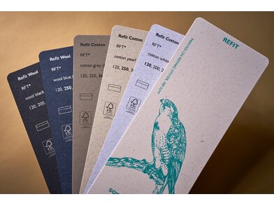 Papier upcyclingowy, produkowany z 15% domieszką włókien wełnianych i bawełnianych. Do produkcji wykorzystywane są tekstylne produkty uboczne pochodzenia włoskiego, pochodzące z gręplowania, przędzenia i tkania.